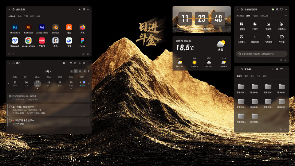 • 桌面組件自由搭配,重要事項一目了然